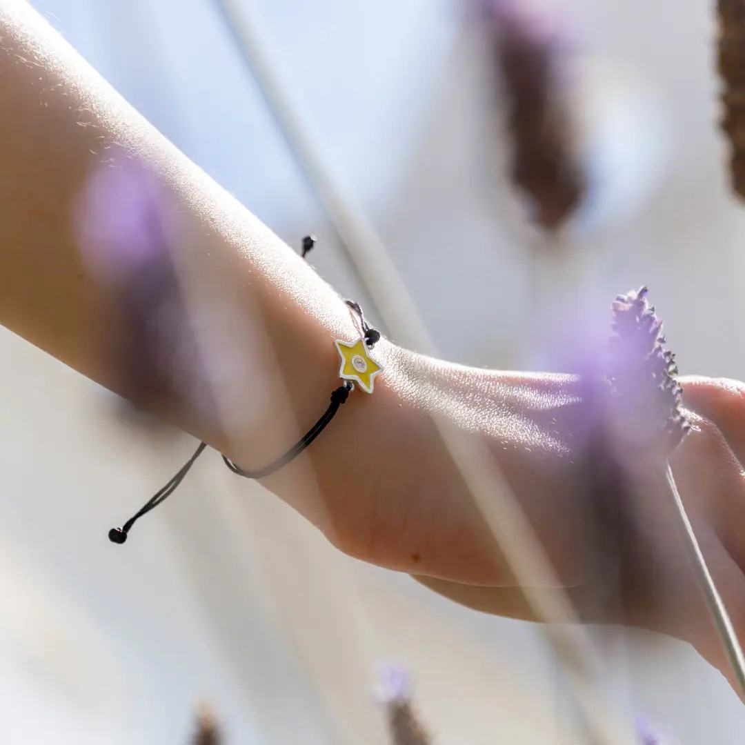 La pulsera está realizada en Plata de ley 925 combinada con hilo encerado y cierre deslizante realizado en macramé para que se ajuste perfectamente a tu muñeca y tengas libertad de movimientos. Además de ser ligera y resistente al agua para que solo tengas que preocuparte de disfrutar de tu verano. Descubre las otras variantes.