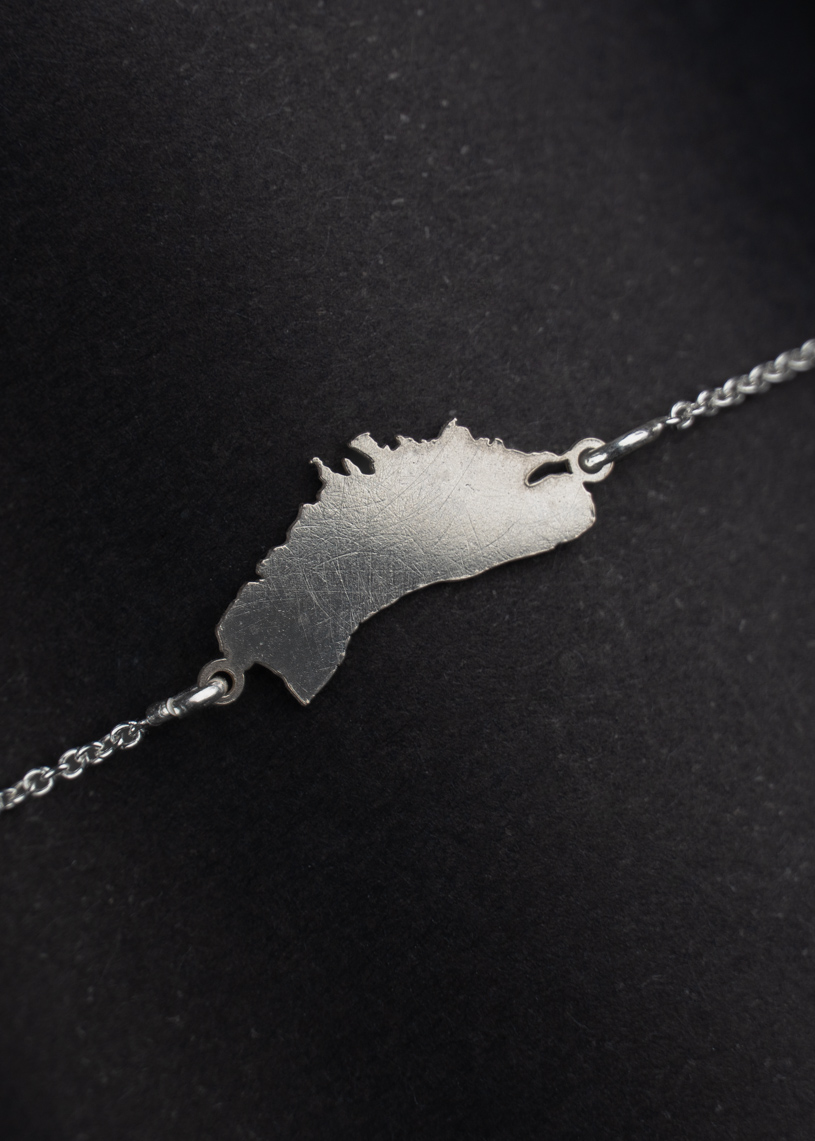 Esta pulsera en plata de Ley 925 reproduce la silueta de la isla, creando un vínculo tangible con tus recuerdos y emociones más profundos.