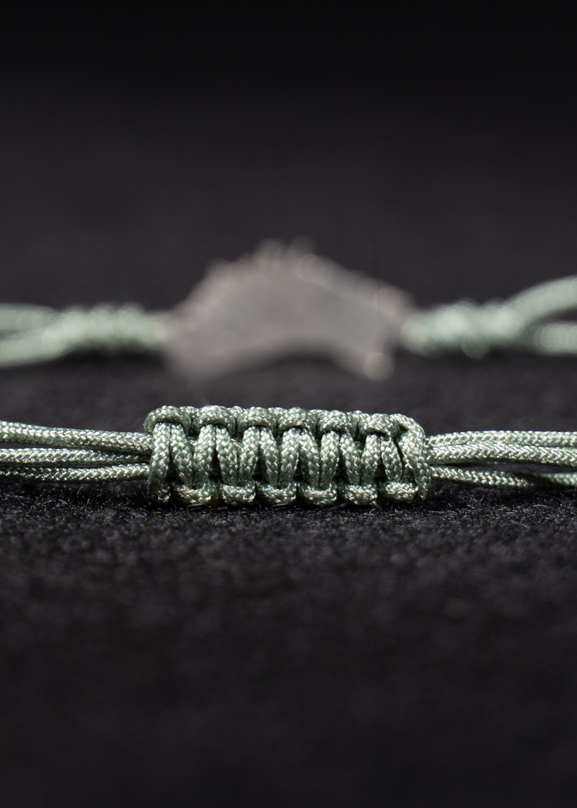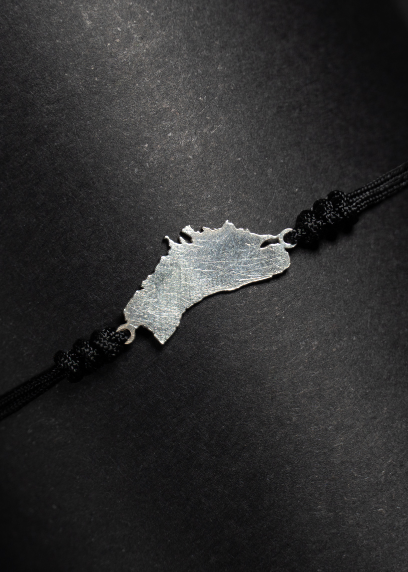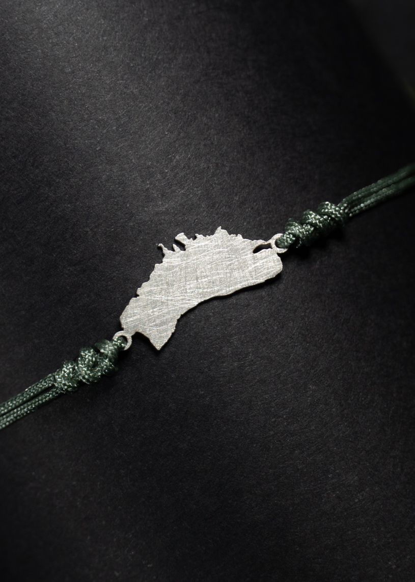 La figura de la isla mide 15 mm de largo por 10 mm de alto, y va unida a un cordón de hilo encerado con cierre ajustable de macramé, que permite adaptarla cómodamente. Los extremos están rematados con bolitas decorativas, dando un acabado cuidado al diseño. Además, puedes elegir el color del hilo para personalizarla a tu gusto.